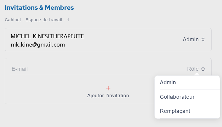 - Admin : Si vous invitez un associé, vous pouvez lui attribuer le rôle d’administrateur, lui donnant ainsi les mêmes droits et accès que vous sur l’espace de travail.