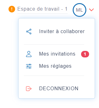 Maintenant que l’invitation est acceptée, vous pouvez choisir l’espace de travail à utiliser en cliquant sur vos initiales depuis l’écran d’accueil.