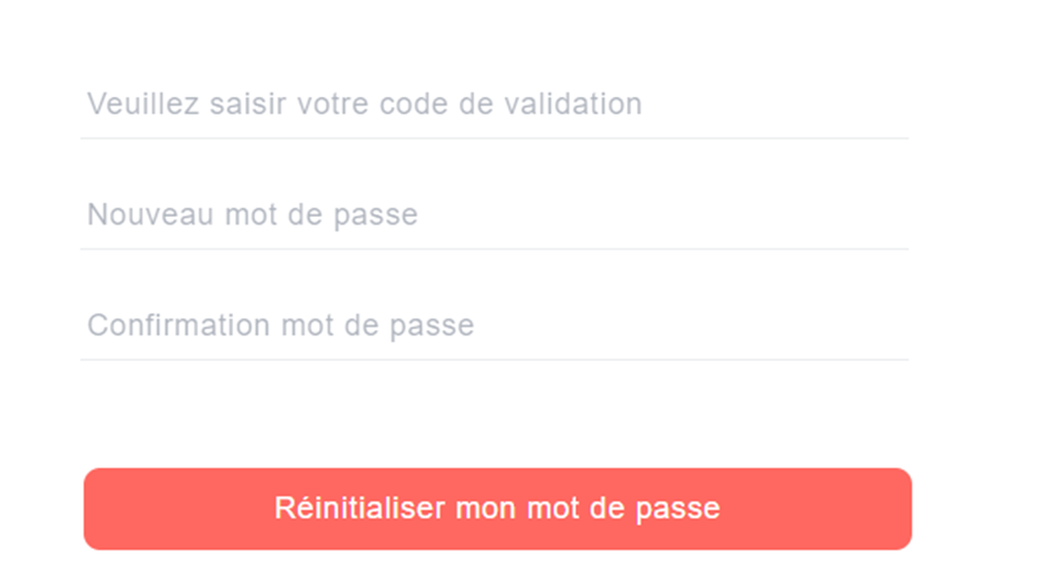 - Un code vous sera envoyé par e- e-mail. Utilisez ce code pour réinitialiser votre mot de passe en suivant les instructions fournies dans le message.