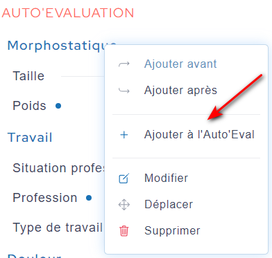 - Pour ajouter un item à l’Auto’Eval, cliquez sur le nom de l’item puis sur l’option « Ajouter à l’Auto’Eval » dans le menu qui apparait
