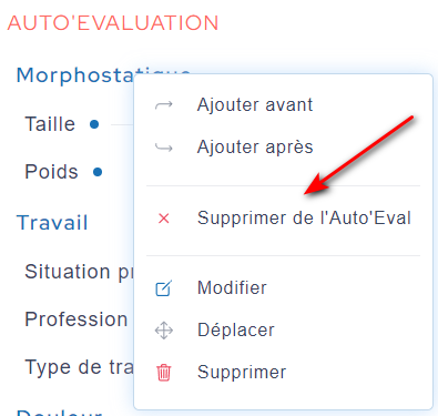 - Pour retirer un item de l’Auto’Eval, cliquez sur le nom de l’item puis l’option « Supprimer de l’Auto’Eval ».
